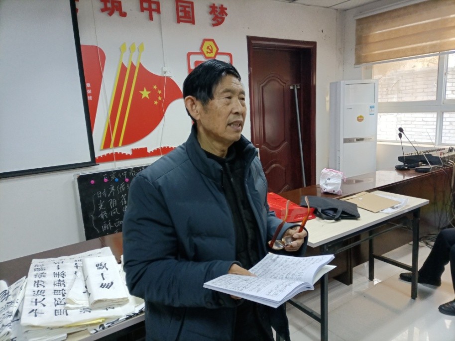 冉守学今年66岁了,几十年来,他帮助全县老年书画爱好者创作了诸多优秀书画作品,为中牟文化强县注入了正能量。他自任中牟县老年书画研究会副会长和第三届秘书长以来,每月活动不间断,并积极向各级书画组织上报书法作品,每年举办1—2次个人书画展。