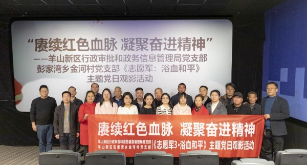 为深化基层党组织建设,推动城乡支部交流互促,11月10日上午,信阳羊山新区行政审批和政务信息管理局党支部与彭家湾乡金河村党支部联合开展“赓续红色血脉 凝聚奋进精神”主题党日活动,共同观看红色影片《志愿军:浴血和平》。共计20余名党员参加活动。