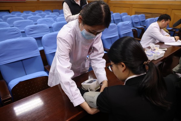 活动现场,开封市中医院由多位经验丰富的中医师组成专家团队,提供健康检测、中医诊疗、特色体验全方位服务。健康检测区,干警有序参与免费血糖检测、甲状腺彩超声检查,医生记录数据、解读报告,并针对伏案工作易引发的代谢问题、甲状腺异常等给出预防建议;中医诊疗区,医师通过“望闻问切”把脉辨证,分析干警体质,解答失眠、颈肩腰不适等问题,提供调理指导;耳针、放血疗法等特色项目人气十足,医生以娴熟技艺缓解干警不适,让大家感受中医魅力。